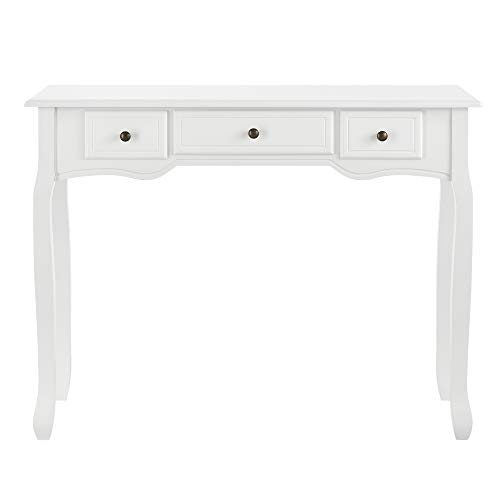 En.casa - Tavolo Consolle Vintage con 3 Cassetti 78x100x35 da Salotto/Ingresso/Soggiorno Bianco