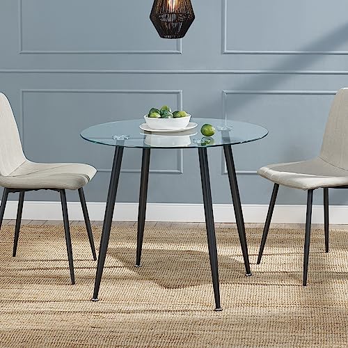En.casa - Tavolo Rotondo con Piano in Vetro Temperato Trasparente Ø87 Tavolo da Sala Pranzo con Gambe in Acciaio - Nero