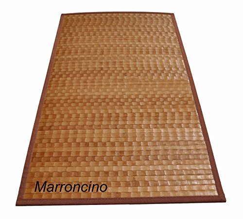 Ecco l'unico tappeto che potrete lavare col pavimento.Il tappeto e' formato da listelli di bamboo naturale larghi 15 mm, spessore 3 mm circa, elaborati con lavorazione tamburata che dona al tappeto un effetto chiaro scuro naturale e completato da un sottofondo telato antiscivolo e resistente bordatura.Prodotto importatoN.B. Eventuali imperfezioni non sono da considerarsi difetti ma una normale caratteristica di un prodotto realizzato con bamboo naturale.