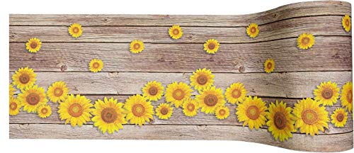 Onde girasole: Tappeto passatoia largo 50 cm. lunghezza a scelta.Una stampa digitale con un'ottima risoluzione per un effetto solare in tutta la casa, su di una base di legno allegri e vivaci girasoli si rincorrono in morbide onde spiccando vivaci sul fondo naturale.