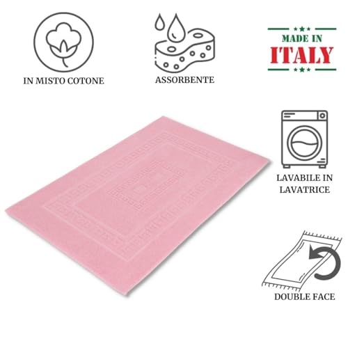 CASA TESSILE Torino tappeto bagno in spugna cm 60X120 Tappeto Bagno Assorbente in Cotone, Tappeto Bagno Senza Antiscivolo - ROSA