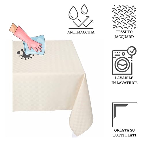 CASA TESSILE Tovaglia antimacchia jacquard SCACCO MATTO Tovaglia a Scacchi Colorata. - BEIGE, 4 posti 140X140 cm.