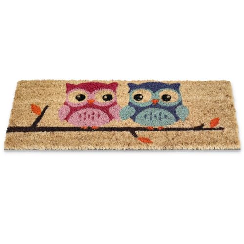 CASA TESSILE Zerbino Mini in Cocco cm 23X53 Duplo Piccolo Zerbino Scalino Antiscivolo - Dis. Gufi