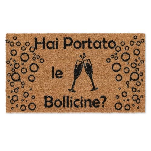 CASA TESSILE Zerbino Tappeto Ingresso Rettangolare in Cocco, 40X70 cm, Fondo in Gomma Antiscivolo - Stampa Bollicine