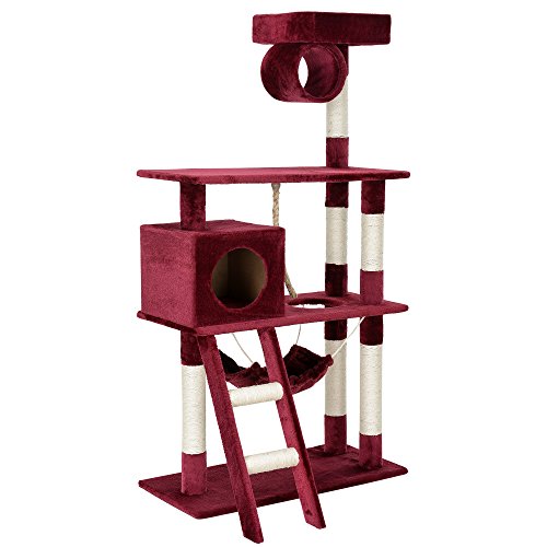 En.casa - Tiragraffi per catti (Circa 70 x 35 x 141 cm) (Rosso Scuro) Grotta per accucciarsi/Piattaforma visuale/Sisal/con Tanti Giochi - e possibilità di accucciarsi