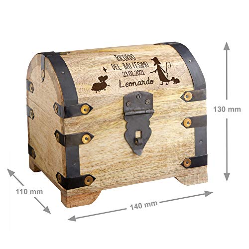 Casa Vivente Scrigno Portagioie in Legno Chiaro con Incisione per il Battesimo Personalizzata con Nome e Data, Salvadanaio Scatola Portaoggetti, Accessori Decorativi