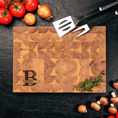 Casa Vivente Tagliere in Legno Massiccio con Incisione Personalizzata con Iniziale e Nome, Accessori di Design per Intenditori, Utensili da Cucina
