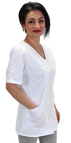 Casacca, Camici da Lavoro Donna con Zip,Bianco,Cotone, Estetista,parrucchiera, MAESTRA Asilo,Alimentari (m, Bianco)