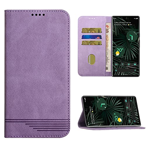 CASAFUNY Custodia per Google Pixel 6 Pro Cover Portafoglio in Pelle PU Protettiva con Funzione Stand Slot Cart, TPU Magnetica Flip Cover per Google Pixel 6 Pro (6,71 pollici), Viola