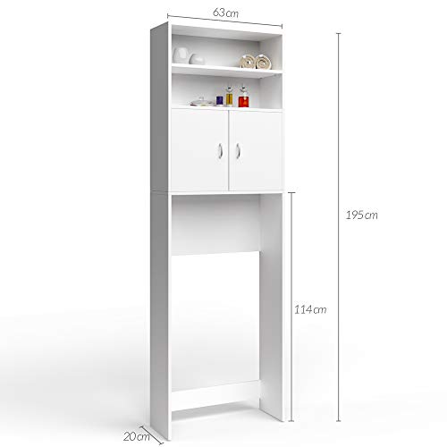 Casaria Mobile per Lavatrice Mobiletto da Bagno Armadio 3 Mensole 2 Ante 195x63x20cm Corridoio