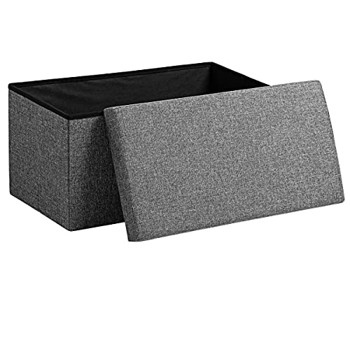 CASARIA Pouf Contenitore 2in1 Pieghevole 100L Effetto Lino Grigio Scuro 80x40x40cm Poggiapiedi Baule