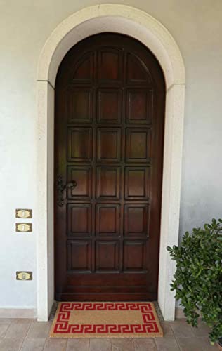 Casatessile Zerbino Antiscivolo in Cocco Naturale IMPERATORE Greca Elegante Tappeto da Ingresso - Bordeaux, 40x80 cm.
