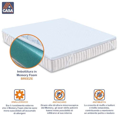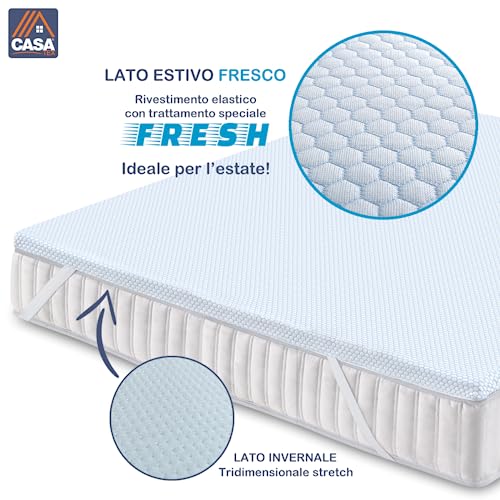 Casatex | Topper Bed ESTIVO FRESCO Memory - Sovramaterasso ideale per l'estate, rinfresca e corregge i difetti del materasso - Rivestimento Estate/Inverno | Matrimoniale 160x190x4 cm