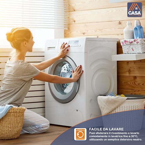 【 FRESCO, IDEALE PER L'ESTATE 】- Dotato di un rivestimento in morbida microfibra DOUBLE-FACE: un LATO ESTIVO in rivestimento elastico FRESH e un lato invernale in classico tessuto stretch. Il lato estivo è infatti sottoposto allo speciale trattamento FRESH, una lavorazione speciale che rende il tessuto MOLTO PIÙ FRESCO AL TATTO, quindi piacevole nei periodi dell'anno più caldi, soprattutto a chi soffre particolarmente di SUDORAZIONE. Dimenticati i sonni agitati per via del caldo opprimente!