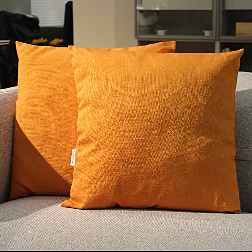 Casaviva Set 2 Cuscini Completi di Imbottitura cm 50 x 50 Made in Italy in 100% Policotone effetto lino Interno in Fibra di Poliestere. Sfoderabili con Zip in tinta (Arancione)