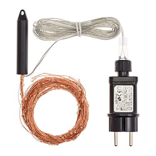 Cascata ciuffo Metal 1 m, 10 Stringhe, 200 microled Bianco Caldo, Luce Fissa, Cavo Metal Rame, 4,5V, Interno