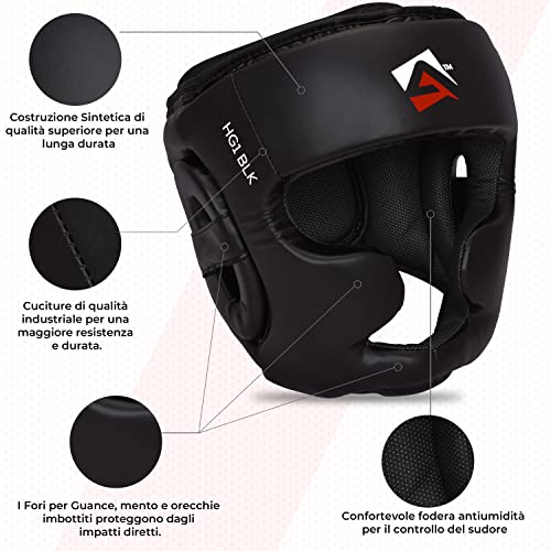 PROTEZIONE COMPLETA - La protezione per la testa offre una protezione a 360*, coprendo la fronte, le guance, le orecchie, il mento e la parte posteriore della testa. La nostra complessa imbottitura assorbe l'impatto di ogni colpo e le incredibili forze generate, riducendo al minimo il rischio di tagli e contusioni.