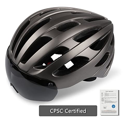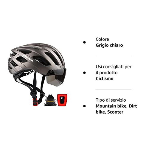Caschi da Bici per Uomo e Donna, KINGLEAD Casco da Bici MTB con Occhiali Magnetici e Luce USB Ricaricabile, Casco da Corsa per Mountain Bike Regolabile con Strisce Riflettenti, 57-62 cm.