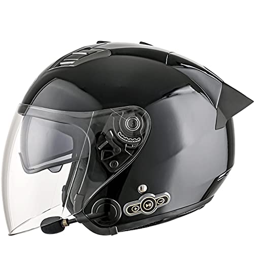Caschi Bluetooth 3/4 Open Face Casco mezzo moto, casco viso adulto con doppia visiera parasole Caschi scooter ece approvato per casco da uomo e donna per giovani,Bright black,L 59~60cm