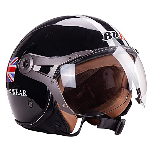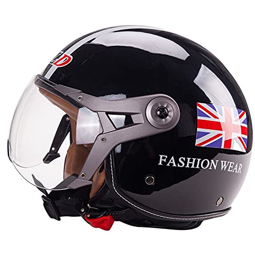 Caschi per Ciclomotore,Testa Anticollisione Protegge La Sicurezza Stradale Degli Utenti Approvato ECE Metà Aperto Faccia Casco Del Motociclo con Occhialoni,Casco Modulare Scooter Black A,56~60cm