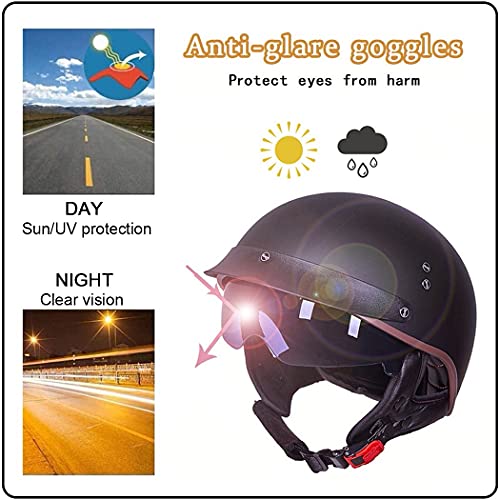 Caschi Cromwell Casco Scodella Casco Scodella Omologato Casco Approvato DOT/ECE Moto Mezza Casco Moto Cruiser Chopper Casco Motociclista Adulto Casco Moto Scooter per Uomini E Donne (57~64cm)