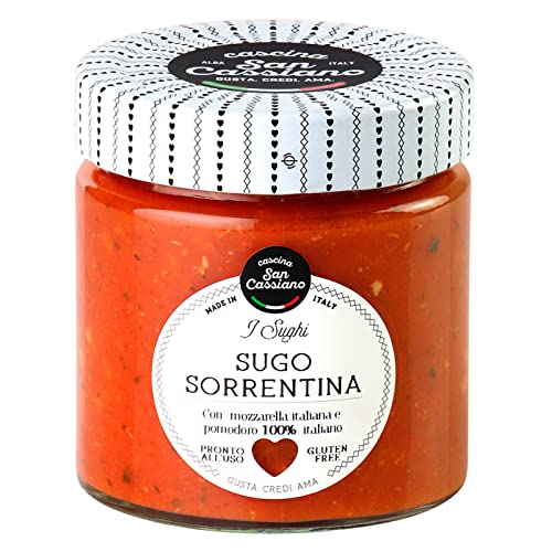 Il Sugo alla Sorrentina è un condimento saporito e gustoso, preparato unendo salsa di pomodoro e mozzarella 100% italiani.