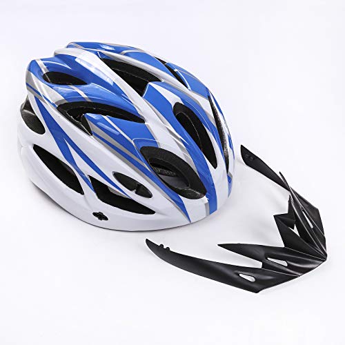Casco da Bicicletta per Adulti Casco da Ciclismo BMX Protezione Sicurezza Unisex Leggera con Cinturino Regolabile e Visiera Staccabile per Equitazione Road Mountain (Blu e bianco, 52-61 cm)