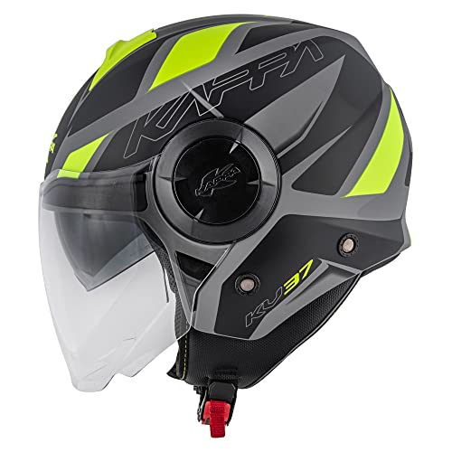 CASCO HELMET MOTO JET KAPPA KV37 OREGON READY NERO GRIGIO GIALLO FLUO OPACO TG XS