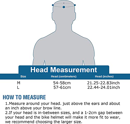 Sistema regolabile: Casco da bici per adulti dotato di un sistema di quadrante di facile utilizzo e cinturini per il mento regolabili, consentono di indossare il casco nella posizione corretta per una sensazione di comfort rassicurante. Dimensioni regolabili: M-21,26"-22,83“ (54cm-58cm) / L-22"-24" (57cm-61cm).