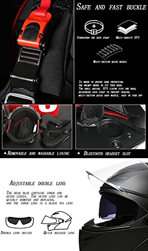 Casco Modulare Bluetooth Integrato,con Auricolare Bluetooth,Casco Moto Integrale Doppia Visiera Casco Scooter per Maschi Adulti,Femmina Omologato ECE C,M=54~56cm
