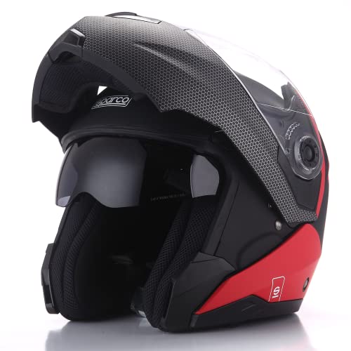 Casco Modulare Moto con Doppia Visiera Sparco Riders SP505 | Casco Moto Integrale Omologato ECE con Visiera Doppia Antigraffio | Casco Moto Modulare Uomo & Donna| NERO / ROSSO OPACO | S