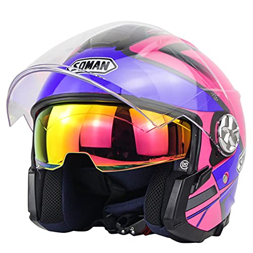 Casco Moto Apribile Con Visiera Ribaltabile Con Doppia Visiera Casco Jet Moto Omologato ECE Per Uomo E Donna Personalità Retrò Motocicletta Crash 3/4 Mezzo Casco, Sgancio Rapido C,XL
