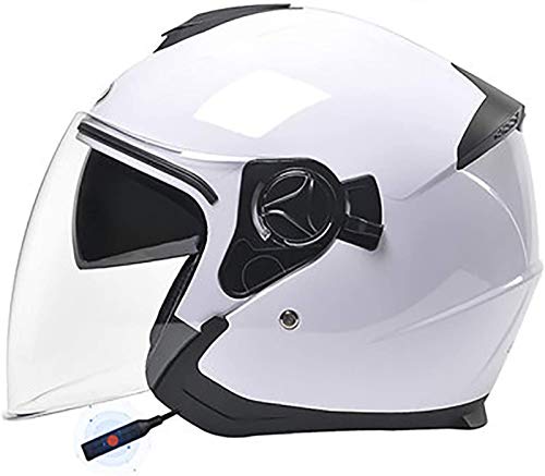 Casco Jet Moto,Caschi Motorcycle Bluetooth Half Helmets Microfono Incorporato,con Funzione di Chiamata Vocale,Approvato ECE Casco con Doppia Visiera Parasole Antiappannamento J,54~59CM