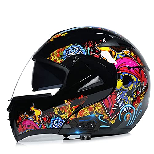 Casco Moto Integrale Leggero Per Donna Casco Moto Modulare Bluetooth Integrato Casco Bici Da Strada Omologato ECE/DOT Per Donna Casco Moto Ciclomotore Con Doppia Visiera Black Skull A,M
