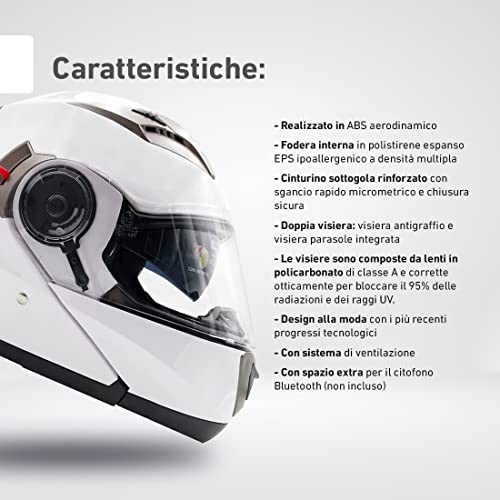 Casco con visiera antigraffio e visiera parasole integrata: interruttore facile da usare per cambiare rapidamente la visiera. Sistema facile da rimuovere e installare la visiera senza attrezzi. Casco Bianco Modular iunisex ☀
