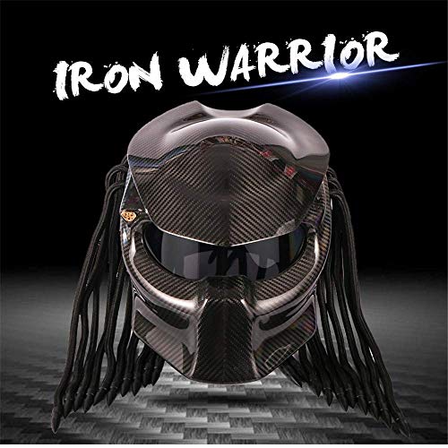 BQT Casco Moto Predatore in Fibra di Carbonio, Casco Integrale Casco Iron Warrior Men ' S, DOT Sicurezza Certificata (M/L/XL/XXL) Dimensioni (Nero),XL