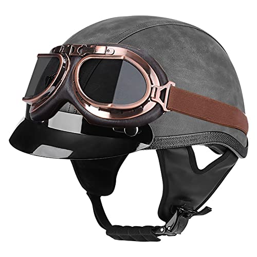 Casco Moto Casco Scooter con Occhiali Omologato ECE/DOT Casco Moto Pelle d'Epoca per Uomo Donna Casco Traspirante Estivo Quattro Stagioni per Scooter Cruiser Pilot (57~62CM)