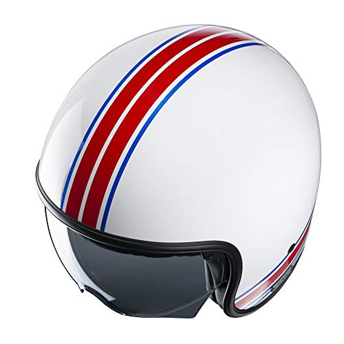 HJC ti propone il suo casco jet V30 - SENTI: Sicurezza: Realizzato in fibra di vetro premium che garantisce resistenza e leggerezza per un peso di 1050 g +/-50 Chiusura del sottogola tramite fibbia micrometrica rapida ed efficiente EPS a tripla densità per un maggiore assorbimento degli urti