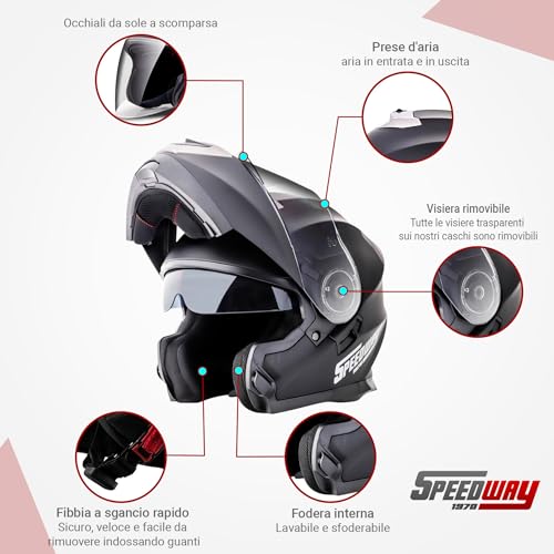 Casco Moto Speedway - Osma - Casco Modulare, Ideale Sia per Uomo che per Donna, Il Nostro Casco Moto Integrale è Ideale per la Città, Casco Moto Omologato ECE e DOT - Nero