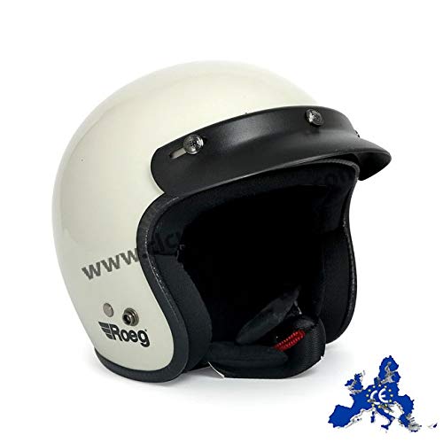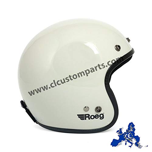 Casco Jet Roeg Helmet Fog White Bianco Lucido Omologato ECE Biker Custom Taglia XS