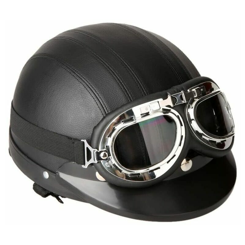 Ideale per motociclisti, crociati, viaggi, scooter e ciclisti. Protezione della testa: è uno strumento molto importante per la tua sicurezza quando esci all'aperto. 3 bottoni sulla parte frontale del casco con apposita visiera del casco per la protezione dai danni del sole. Gli occhiali UV antiappannamento possono proteggere i tuoi occhi ed è una buona decorazione per il tuo viaggio in sella. Lo scialle in pelle rimovibile può essere più caldo nelle giornate fredde e può, nelle giornate calde, un simpatico plaid che puoi indossare in ogni stagione. Descrizione del prodotto Casco da scooter per moto a mezza faccia, casco invernale antivento con visiera UV Occhiali retrò stile vintage 54-60 cm Specifiche: Colore casco: marrone / rosso / nero Colore lente: nero + trasparente Materiale: pelle + ABS + schiuma Strato tampone: schiuma ad alta densità Circonferenza della testa: 54 ~ 60 cm / 21,26 ~ 23,62 pollici Dimensioni cuffie: ca. 26 * 23,5 * 13 cm / 10,24 * 9,25 * 5,12 pollici (L * W *