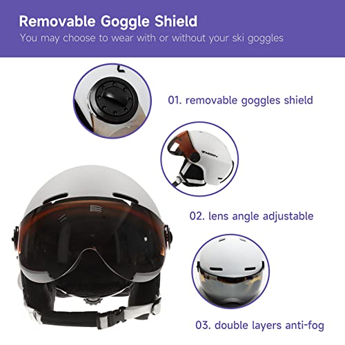 Casco Da Sci Staccabile 2 in 1Con Protezione Antivento Occhiali Da Sci Integrati Antiappannamento Anti-UV Per Lo Snowboard