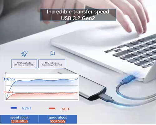 【Velocità】 La custodia SSD USB 3.2 Gen 2 supporta una velocità di trasferimento dati di 10 Gbps e il protocollo UASP e TRIM, che offrono una velocità di trasferimento più rapida. Inoltre, il chip avanzato garantisce anche una trasmissione veloce e stabile.