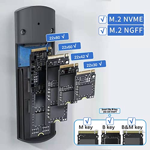【Compatibilità】VNYEZ M.2 NVMe NGFF enclosure SSD compatibile con PCIe e SATA. Dimensioni del fattore di forma M.2: 2230/2242/2260/2280. Supporta la chiave M SSD, la chiave B e la chiave M+B.