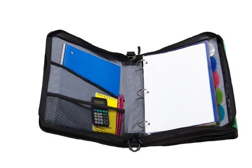 Case-it - Raccoglitore con cerniera a forma di Z, due raccoglitori in uno, doppio anello a D da 1,5", tasche multiple, capacità di 500 pagine, fornito con tracolla, blu Z-176
