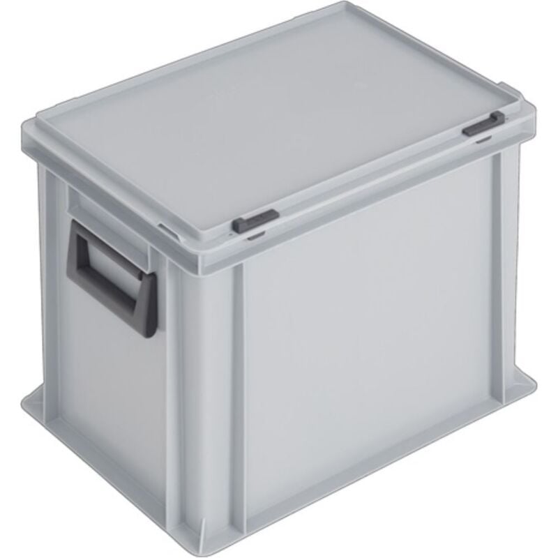 In polipropilene · con 2 maniglie sui lati anteriori · con chiusura scorrevole snap-in · molto stabile · impilabile antiscivolo · resistente alla maggior parte degli acidi e degli oli · resistente alla temperatura da -20 °C a +80 °C · Colore grigio Altre caratteristiche tecniche: · Attrezzatura: 2 maniglie · Versione: Chiusura scorrevole · Altezza interna: 315mm · Lunghezza interna: 355mm · Larghezza interna: 255 mm