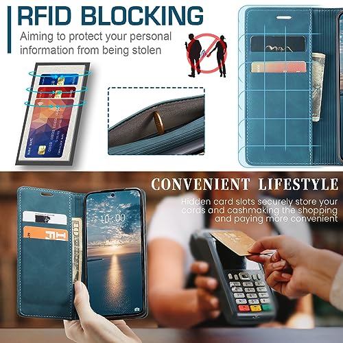 Casecond Cover per Samsung Galaxy A03S con Pellicola Vetro Temperato Custodia in Pelle PU Flip Caso Portafoglio Slot per Schede con Magnetica a Scatto con RFID Blocking - Blu Verde