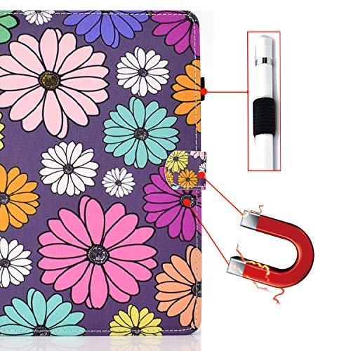 CaseFun Custodia per Samsung Galaxy Tab A 10,1 2019 SM-T510/SM-T515 Fiore Cover in Pelle PU Protettiva Case con Funzione di Stand Flip Copertina Margherita