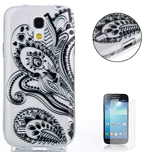 CaseHome Compatible for Samsung Galaxy S4 Mini i9190 Gel di Silicone Caso (Gratuito Proteggi Schermo) Stile Modello Design Trasparente Paraurti AntiGraffio Protettivo TPU Custodia-Hennè di Fiore