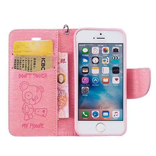 CaseHome for iPhone 5S/5/SE Sbalzato Pelle Flip Caso Portafoglio Magnetico Stile del LibroAntiurto Fondina Full Body Protettivo PU Pelle Caso Copertina Pelle Conchiglia-Rosa